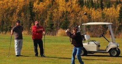 Are you interested in playing a round of golf but don’t know where to go? Love to golf in unique places? Try a 9 hole course built on Tundra! The course runs about 3 hours but if u want more free leisurely playtime that’s no problem! We offer unlimited greens fee, club rentals, a pull or power, a souvenir logo ball, a scorecard, and 6 balls for the course! Round trip transportation to and from select Denali Area hotels is also included! Looking for an alternative time? Email us your preference on time of day and we will check availability.